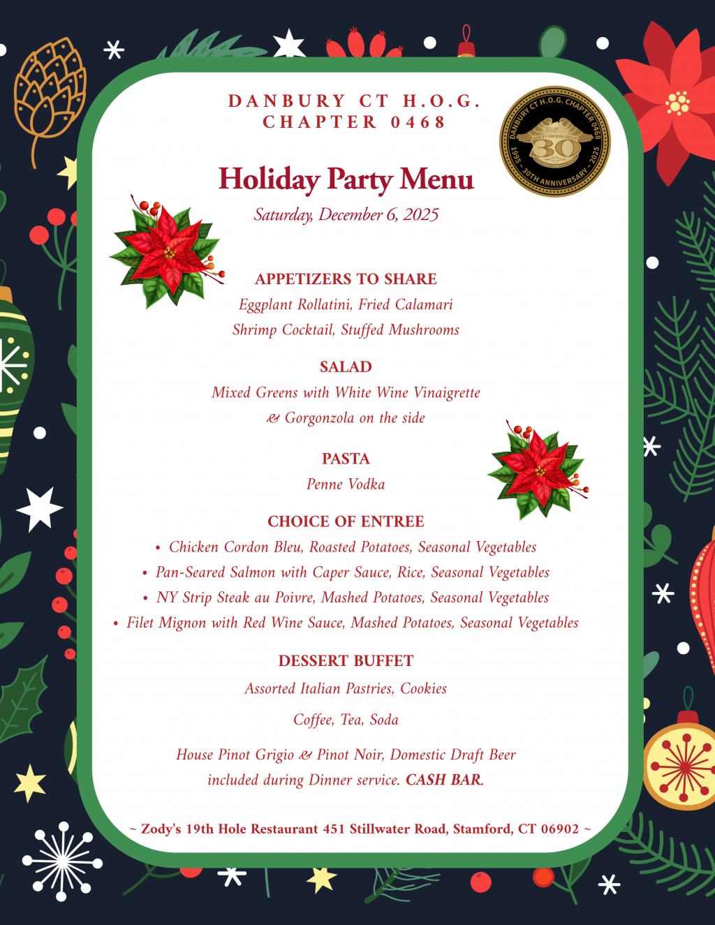 Chapter-Sponsored Holiday Party - Saturday, December 6, 2025